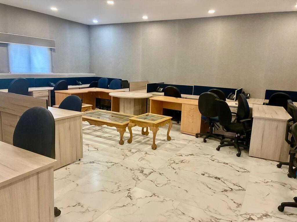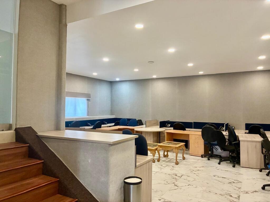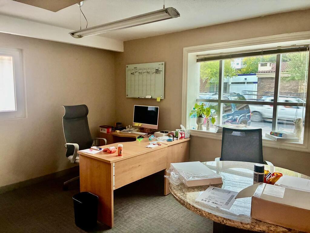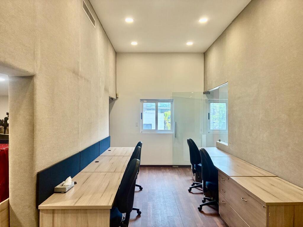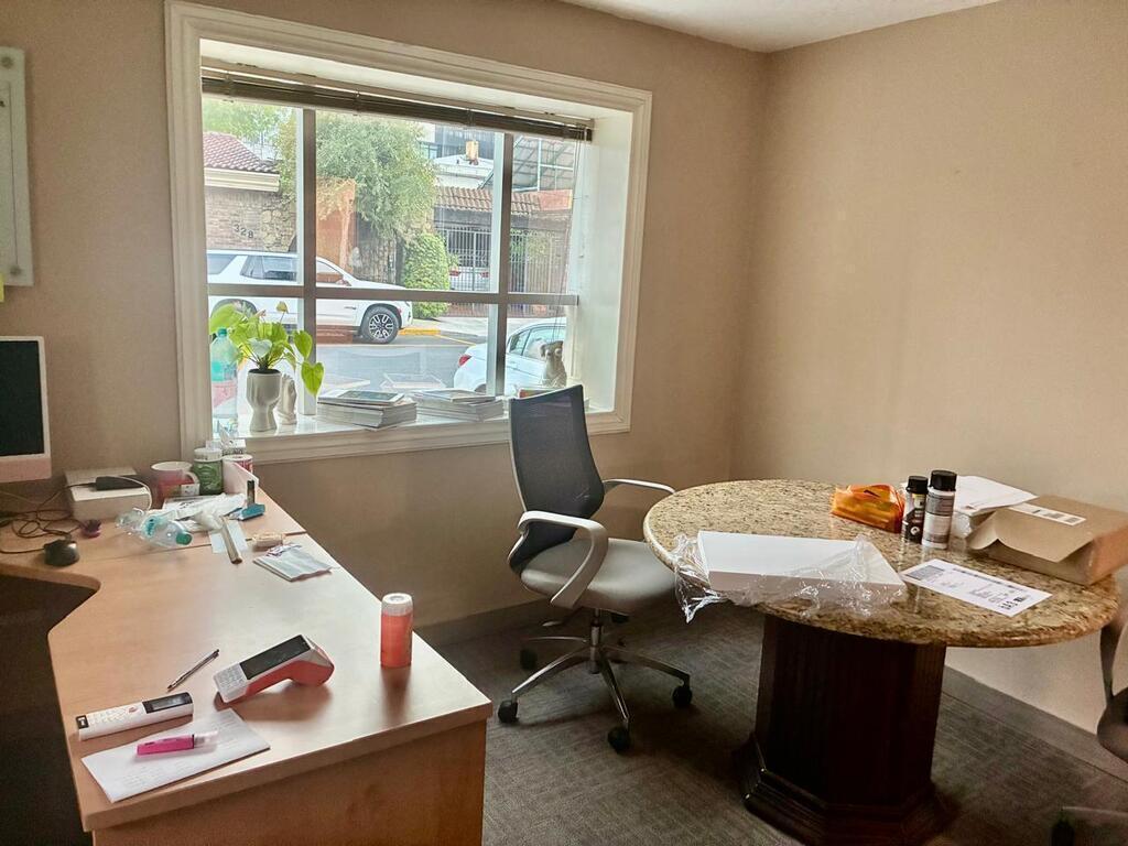 Tiene estacionamiento al frente para 7 autos. Son 4 privados, sala de juntas, área para las Secretarias y área amplia para espacio de trabajo. Hay medios baños en los privados y en el área de trabajo hay baños, hombres y mujeres.